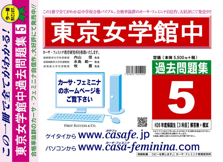 東京女学館中学校 最新過去問5ヶ年セット[HPにある過去問のうちの5ヶ年] 2割引