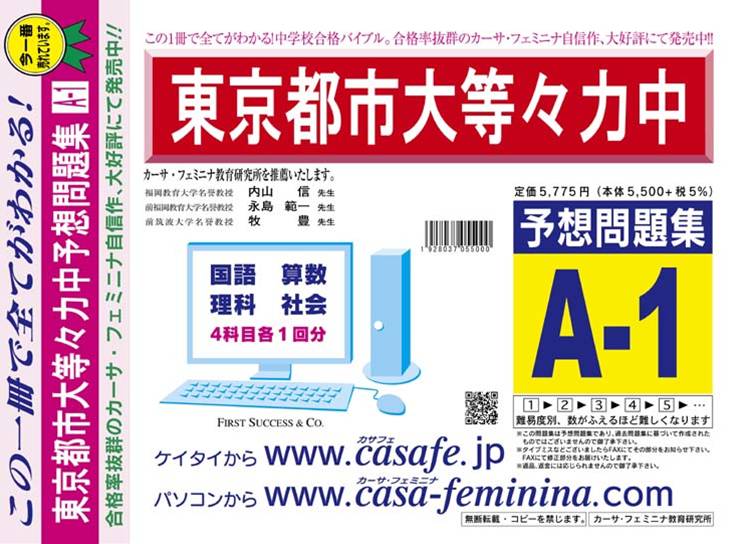 東京都市大学等々力中学校 最新過去・予想・模試5種セット 1割引(最新の過去問題集1冊[HPにある過去問のうちの最新]、予想問題集A1、直前模試A1、合格模試A1、開運模試A1)