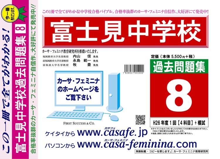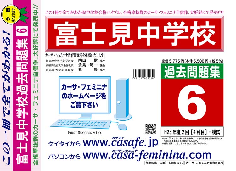 富士見中学校 最新過去問5ヶ年セット[HPにある過去問のうちの5ヶ年] 2割引