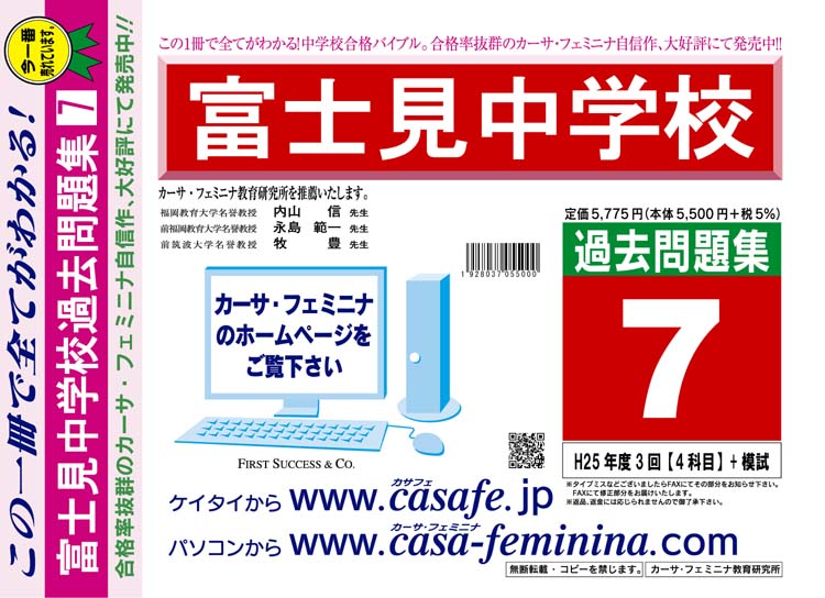 富士見中学校 最新過去問3ヶ年セット[HPにある過去問のうちの3ヶ年] 1割引