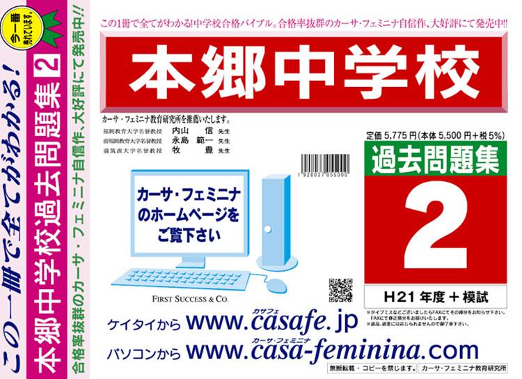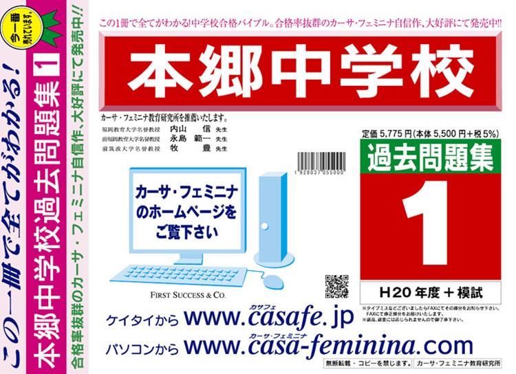 本郷中学校 過去問+プラス<合格査定テスト付> 1割引(最新の過去問題集1冊[HPにある過去問のうちの最新]、合格査定テスト)
