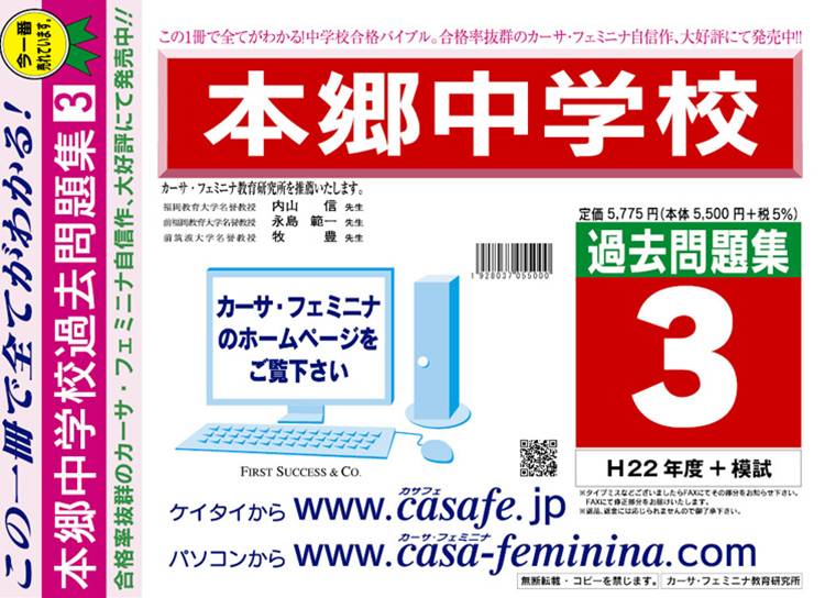 本郷中学校 最新過去問3ヶ年セット[HPにある過去問のうちの3ヶ年] 1割引