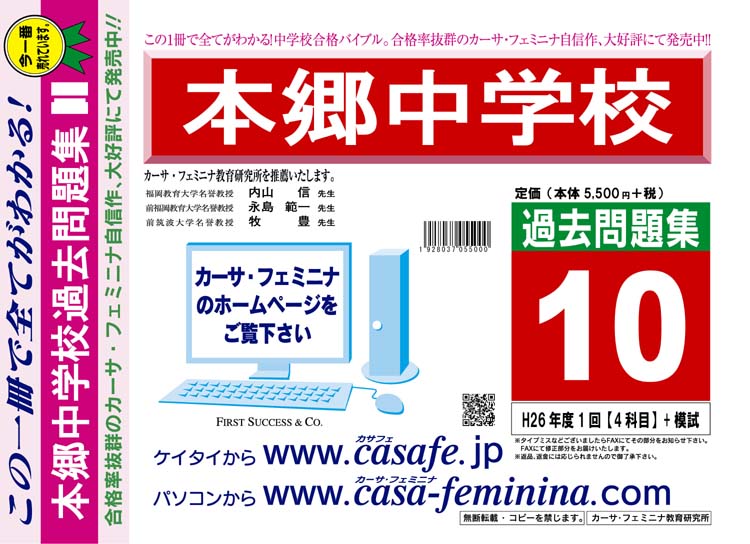 本郷中学校 H27年度用過去問題集10(H26/1回【4科目】+模試)