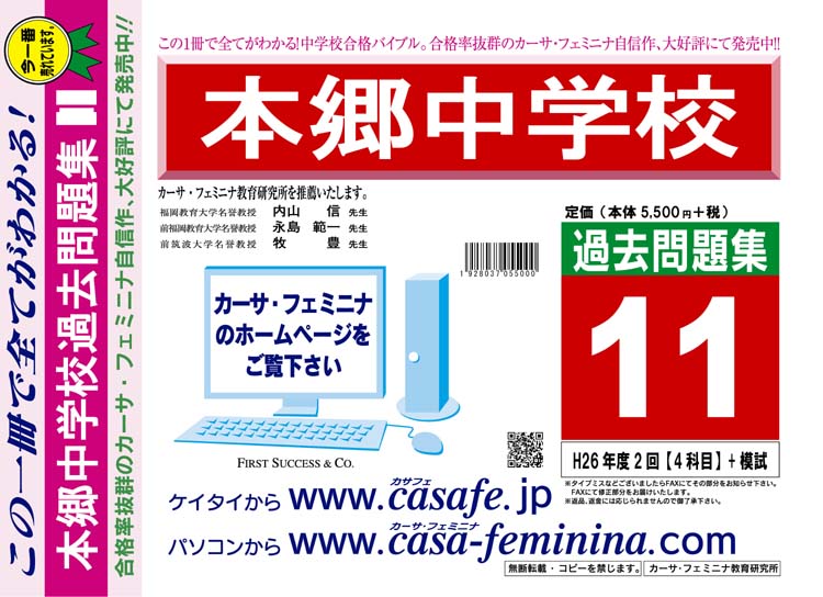 本郷中学校 H27年度用過去問題集11(H26/2回【4科目】+模試)