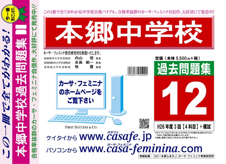 本郷中学校 H27年度用過去問題集12(H26/3回【4科目】+模試)