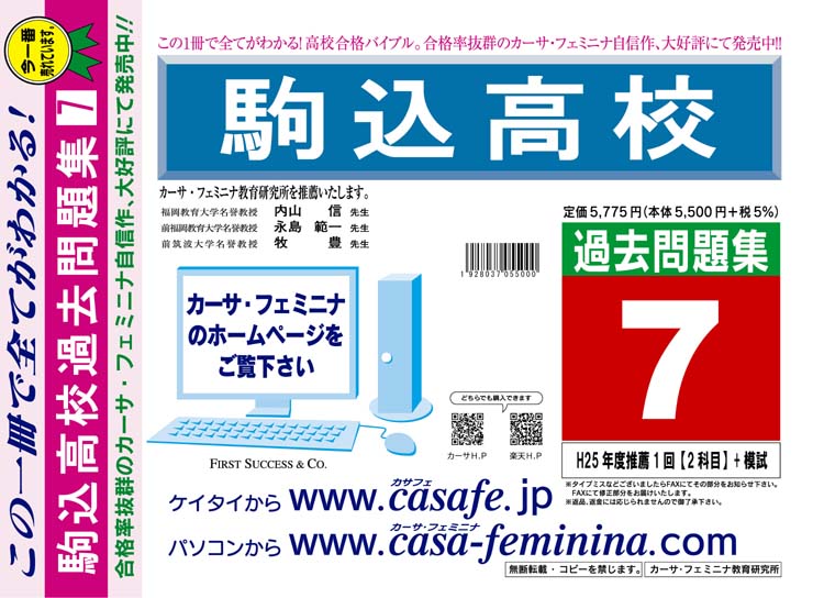 駒込高校 H26年度用過去問題集7(H25/推薦1回【2科目】+模試)