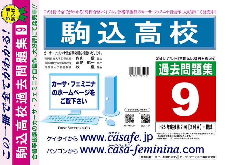 駒込高校 H26年度用過去問題集9(H25/推薦2回【2科目】+模試)