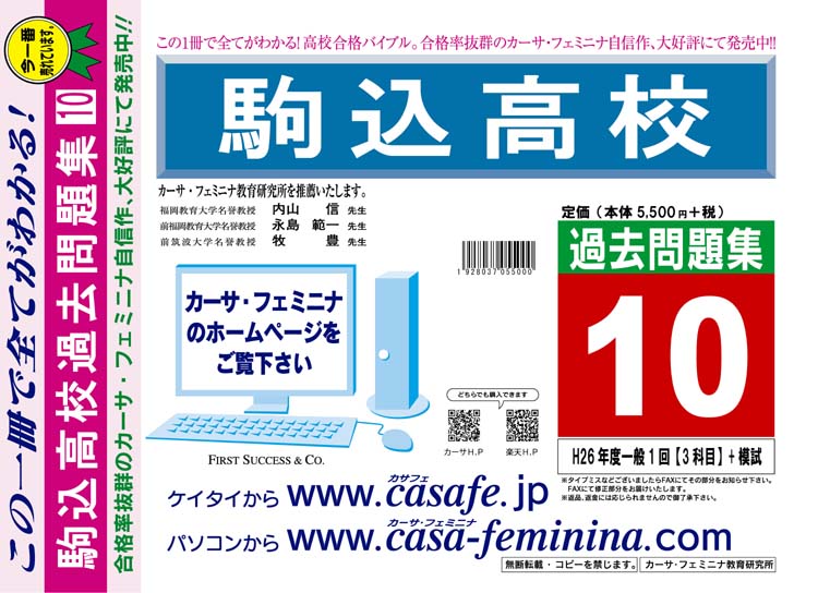駒込高校 H27年度用過去問題集10(H26/一般1回【3科目】+模試)