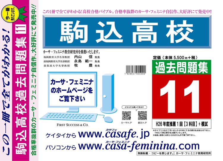 駒込高校 H27年度用過去問題集11(H26/推薦1回【3科目】+模試)