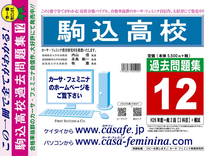 駒込高校 H27年度用過去問題集12(H26/一般2回【3科目】+模試)