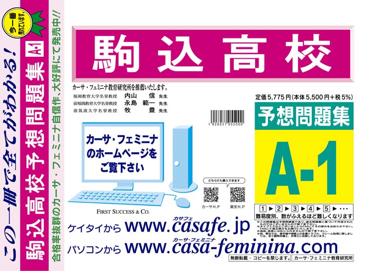駒込高校 最新過去・予想・模試5種セット 1割引(最新の過去問題集1冊[HPにある過去問のうちの最新]、予想問題集A1、直前模試A1、合格模試A1、開運模試A1)