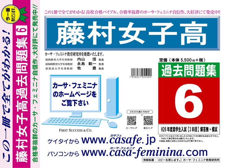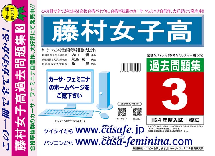 藤村女子高校 最新過去問3ヶ年セット[HPにある過去問のうちの3ヶ年] 1割引