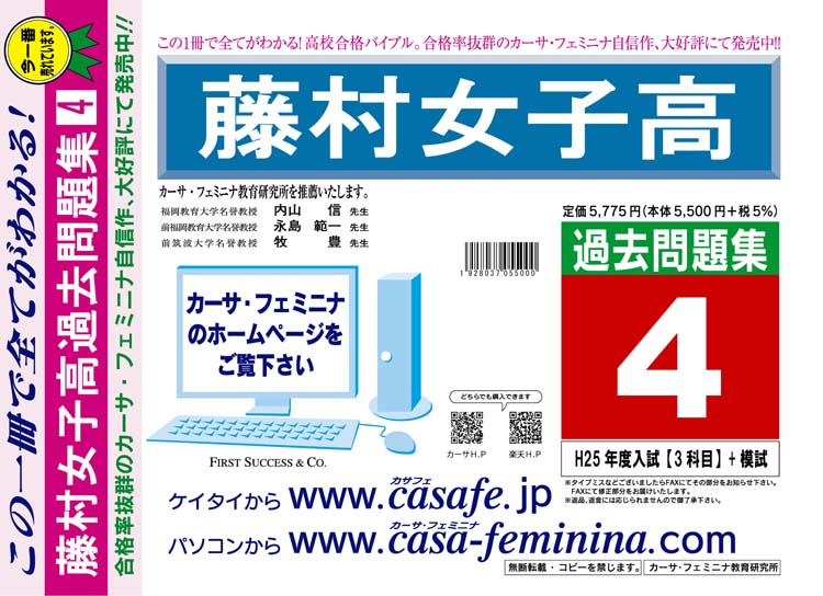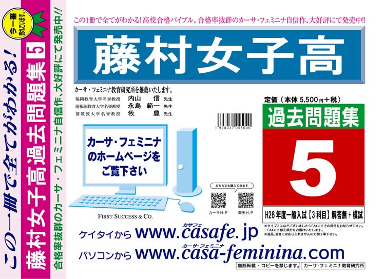 藤村女子高校 最新過去・予想・模試5種セット 1割引(最新の過去問題集1冊[HPにある過去問のうちの最新]、予想問題集A1、直前模試A1、合格模試A1、開運模試A1)