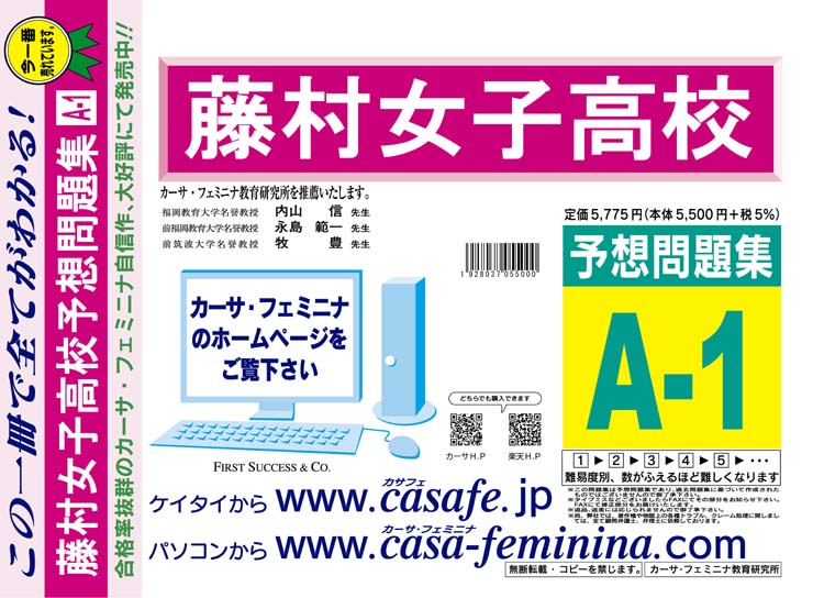 藤村女子高校 初心者セット 1割引(最新の過去問題集1冊[HPにある過去問のうちの最新]+予想問題集A1)