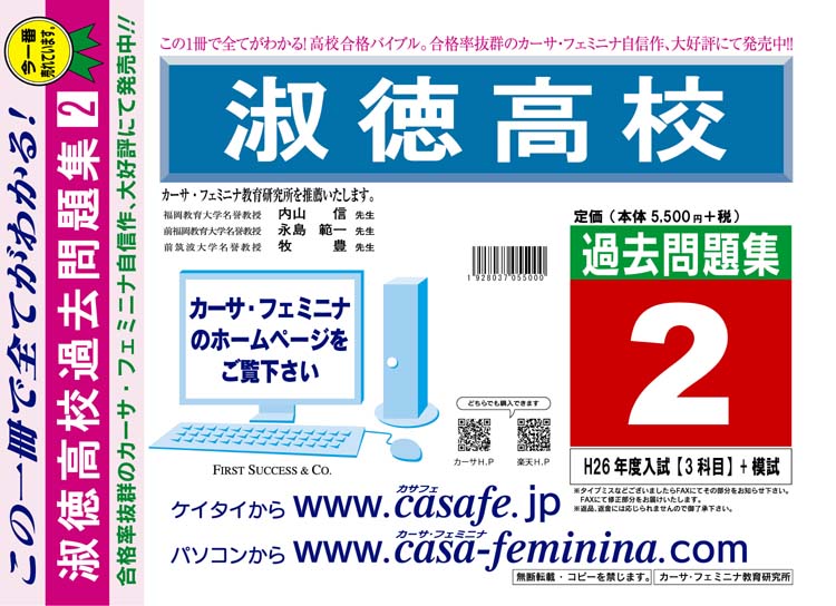 淑徳高校 初心者セット 1割引(最新の過去問題集1冊[HPにある過去問のうちの最新]+予想問題集A1)