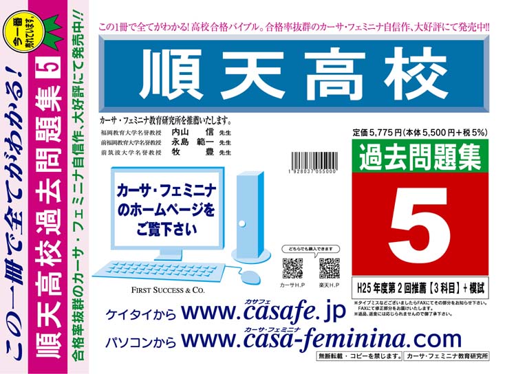 順天高校 H26年度用過去問題集5(H25/第2回推薦【3科目】+模試)