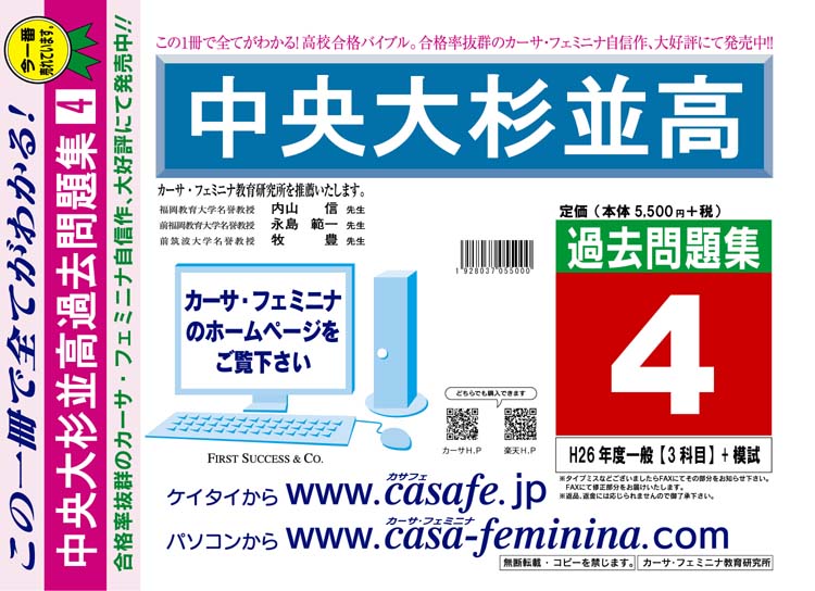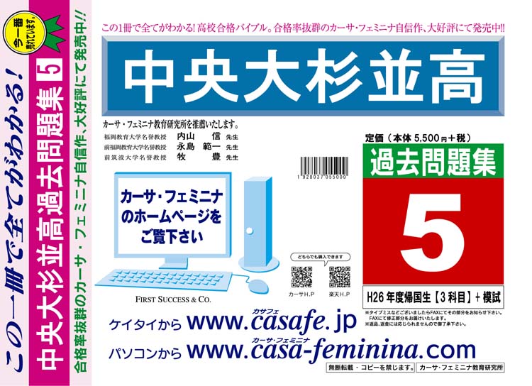 中央大学杉並高校 最新過去・予想・模試5種セット 1割引(最新の過去問題集1冊[HPにある過去問のうちの最新]、予想問題集A1、直前模試A1、合格模試A1、開運模試A1)