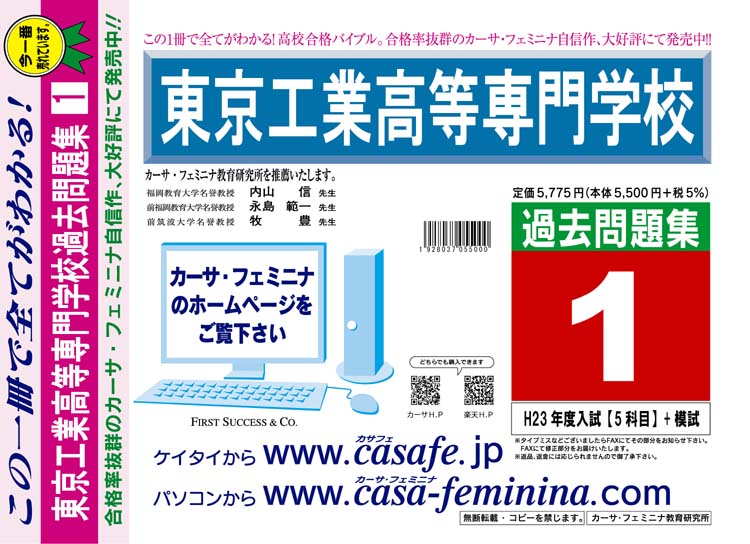 東京工業高等専門学校 最新過去問5ヶ年セット[HPにある過去問のうちの5ヶ年] 2割引