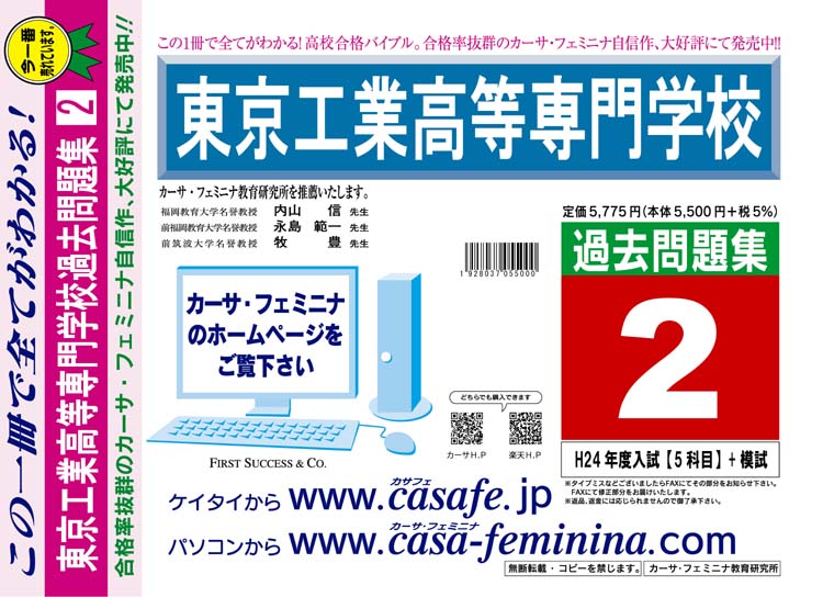 東京工業高等専門学校 最新過去・予想・模試10種セット 1割引(最新の過去問題集2冊[HPにある過去問のうちの最新]、予想問題集A1~2、直前模試A1~2、合格模試A1~2、開運模試A1~2)