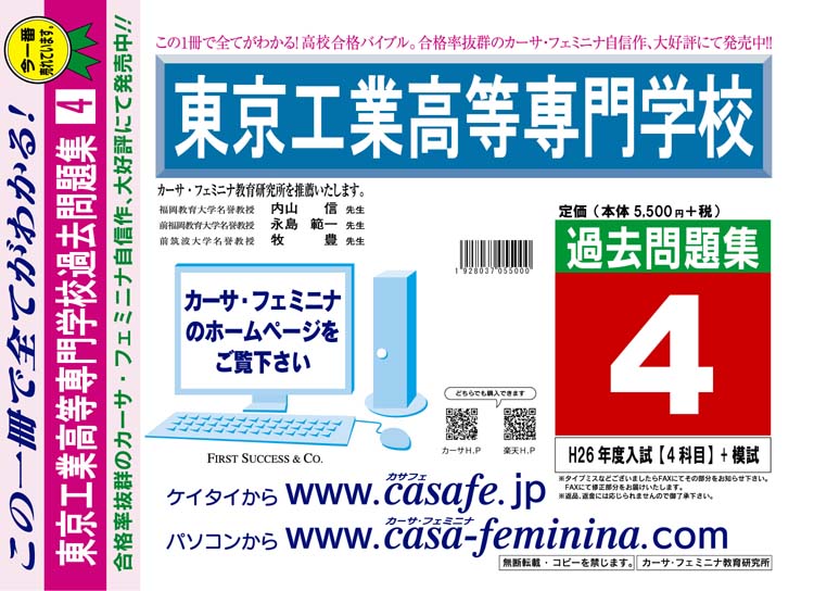 東京工業高等専門学校 最新過去・予想・模試5種セット 1割引(最新の過去問題集1冊[HPにある過去問のうちの最新]、予想問題集A1、直前模試A1、合格模試A1、開運模試A1)