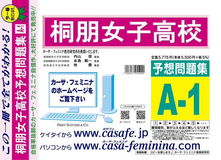 桐朋女子高校 最新過去・予想・模試5種セット 1割引(最新の過去問題集1冊[HPにある過去問のうちの最新]、予想問題集A1、直前模試A1、合格模試A1、開運模試A1)
