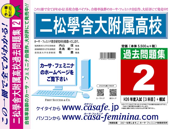 二松學舎大学附属高校 H27年度用過去問題集2(H26【3科目】+模試)