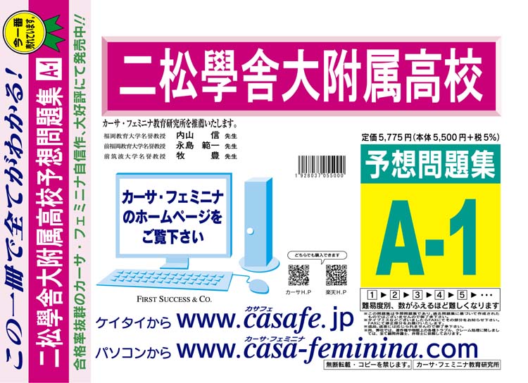 二松學舎大学附属高校 初心者セット 1割引(最新の過去問題集1冊[HPにある過去問のうちの最新]+予想問題集A1)