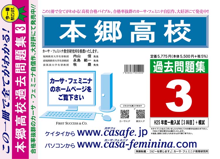 本郷高校 最新過去問3ヶ年セット[HPにある過去問のうちの3ヶ年] 1割引
