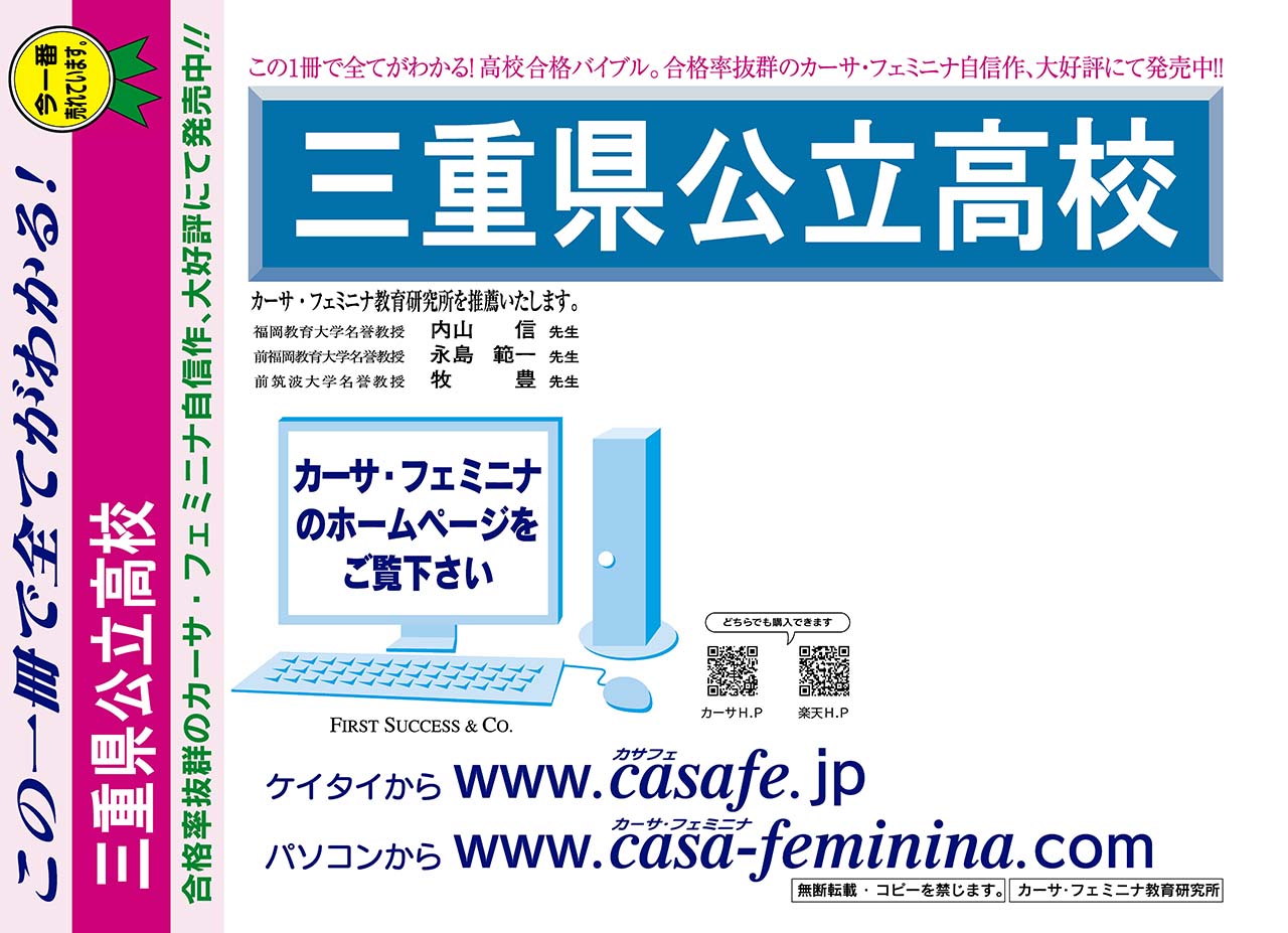 三重県・公立高校 最新過去問3ヶ年セット[HPにある過去問のうちの3ヶ年] 1割引