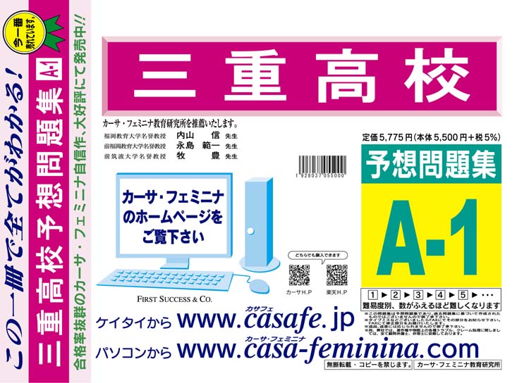 三重高校 初心者セット 1割引(最新の過去問題集1冊[HPにある過去問のうちの最新]+予想問題集A1)