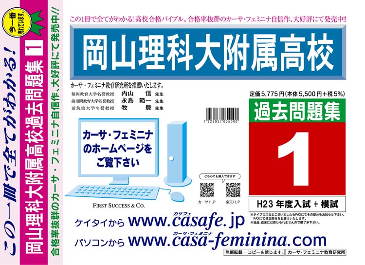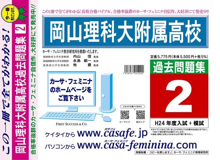 岡山理科大学附属高校 最新過去問3ヶ年セット[HPにある過去問のうちの3ヶ年] 1割引