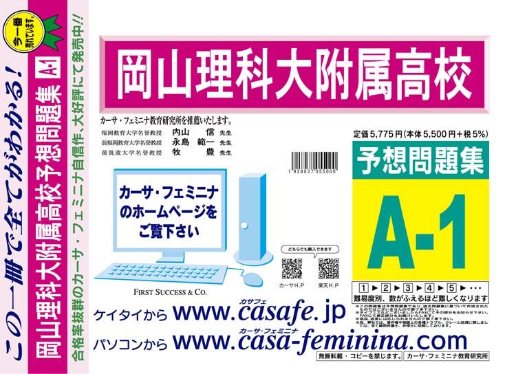 岡山理科大学附属高校 初心者セット 1割引(最新の過去問題集1冊[HPにある過去問のうちの最新]+予想問題集A1)