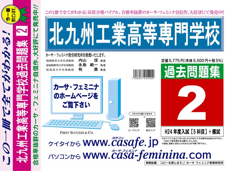 北九州工業高等専門学校 最新過去・予想・模試5種セット 1割引(最新の過去問題集1冊[HPにある過去問のうちの最新]、予想問題集A1、直前模試A1、合格模試A1、開運模試A1)
