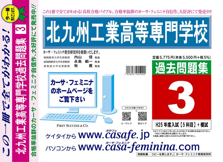北九州工業高等専門学校 最新過去問3ヶ年セット[HPにある過去問のうちの3ヶ年] 1割引
