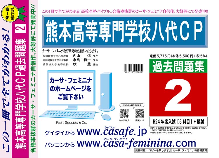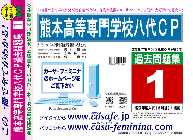 熊本高等専門学校八代CP 最新過去・予想・模試5種セット 1割引(最新の過去問題集1冊[HPにある過去問のうちの最新]、予想問題集A1、直前模試A1、合格模試A1、開運模試A1)