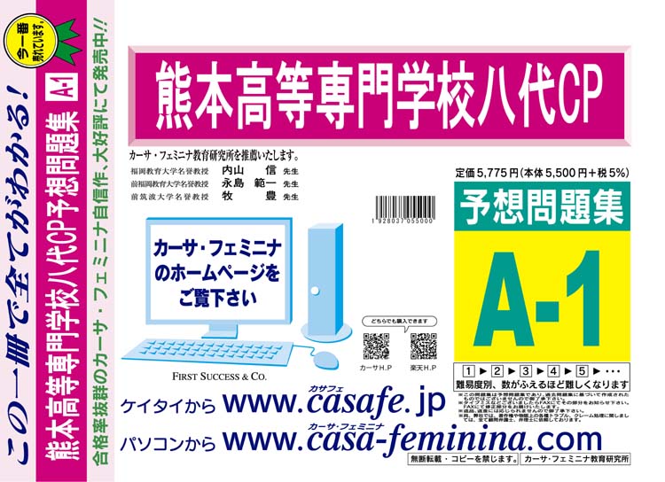 熊本高等専門学校八代CP 初心者セット 1割引(最新の過去問題集1冊[HPにある過去問のうちの最新]+予想問題集A1)